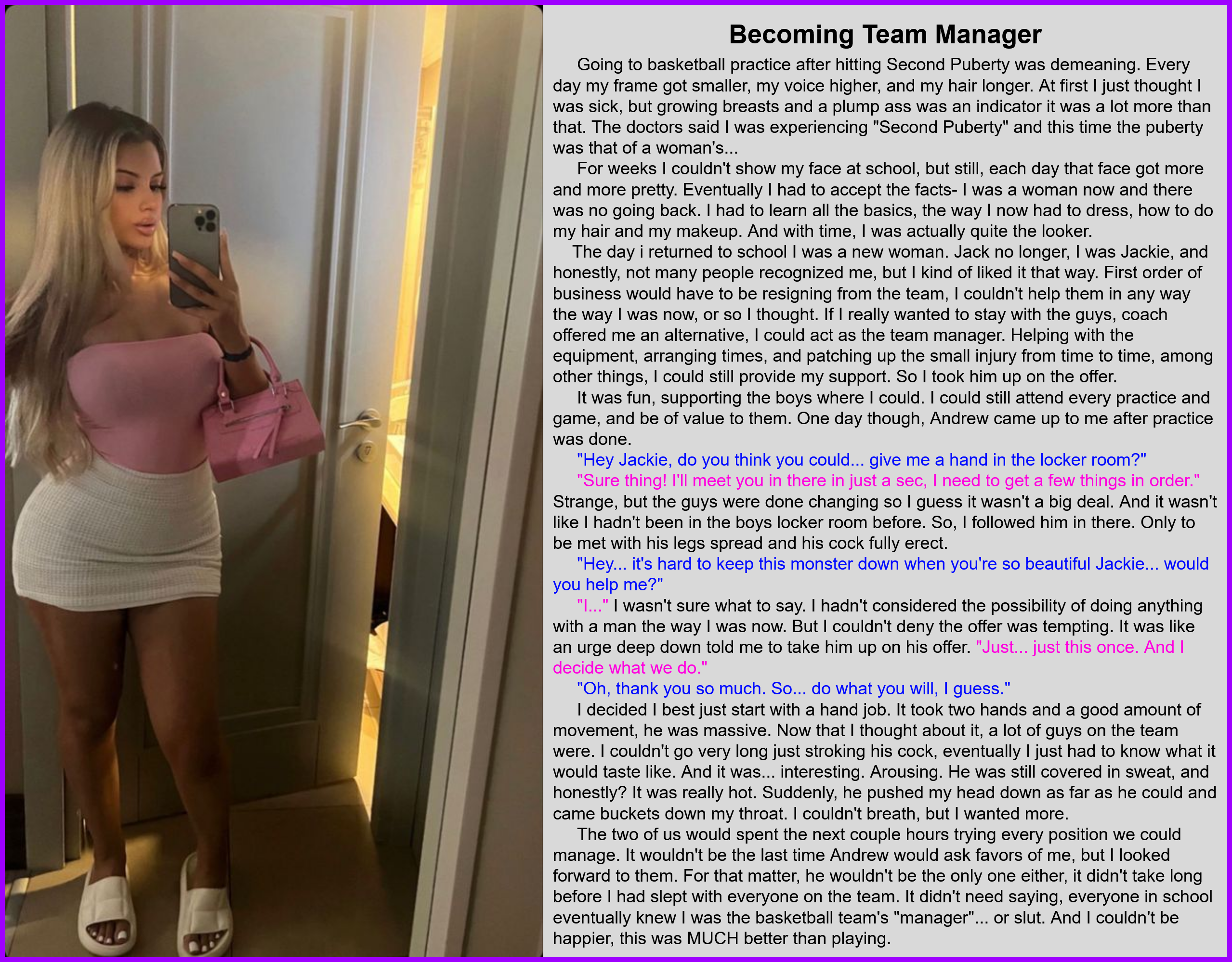 Going to basketball practice after hitting Second Puberty was demeaning. Every day my frame got smaller, my voice higher, and my hair longer. At first I just thought I was sick, but growing breasts and a plump ass was an indicator it was a lot more than that. The doctors said I was experiencing "Second Puberty" and this time the puberty was that of a woman's…