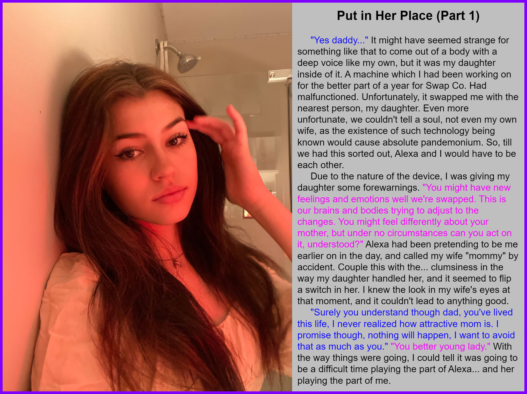 "Surely you understand though dad, you've lived this life, I never realized how attractive mom is. I promise though, nothing will happen, I want to avoid that as much as you." "You better young lady." With the way things were going, I could tell it was going to be a difficult time playing the part of Alexa… and her playing the part of me.