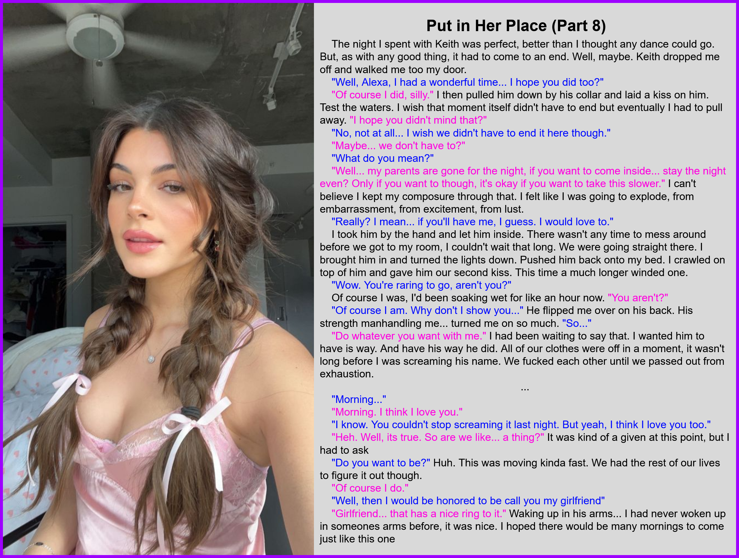 "Girlfriend… that has a nice ring to it." Waking up in his arms… I had never woken up in someones arms before, it was nice. I hoped there would be many mornings to come just like this one