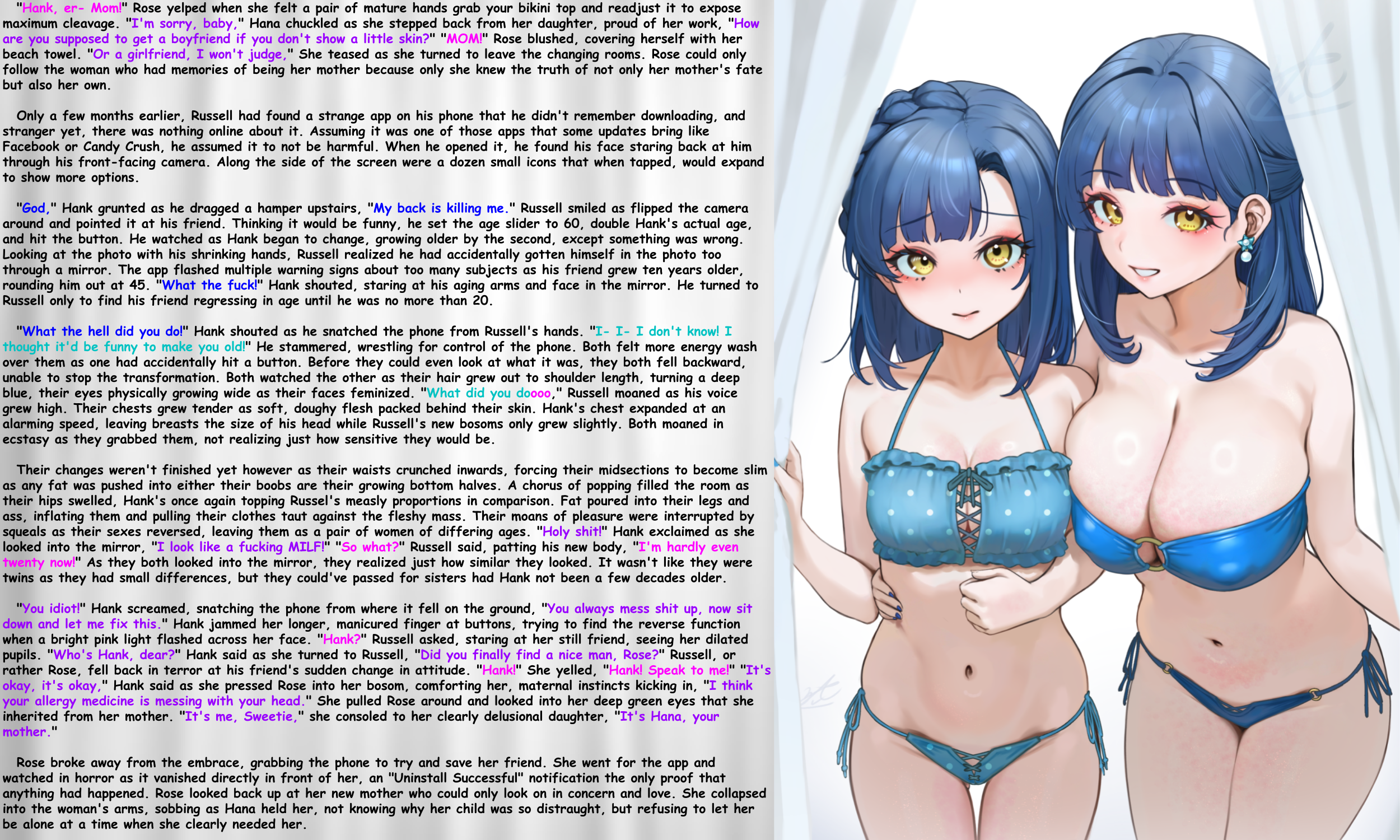 "What the hell is going on here!" An attractive woman in a security uniform stomped over, seizing both of the boys by their collars and dragging them to the office. "Sorry," Jim said insincerely, "Just messing around." "Too late for apologies, I'm sick of you lot trashing my store," she scolded. "Go ahead, call the cops," Jim replied smugly, "My dad will have me out of there before sunset, and he'll have your job." "No need for cops," the officer smiled maliciously, finally striking fear into both unrepenting boys, "Not when you can simply replace what was broken."