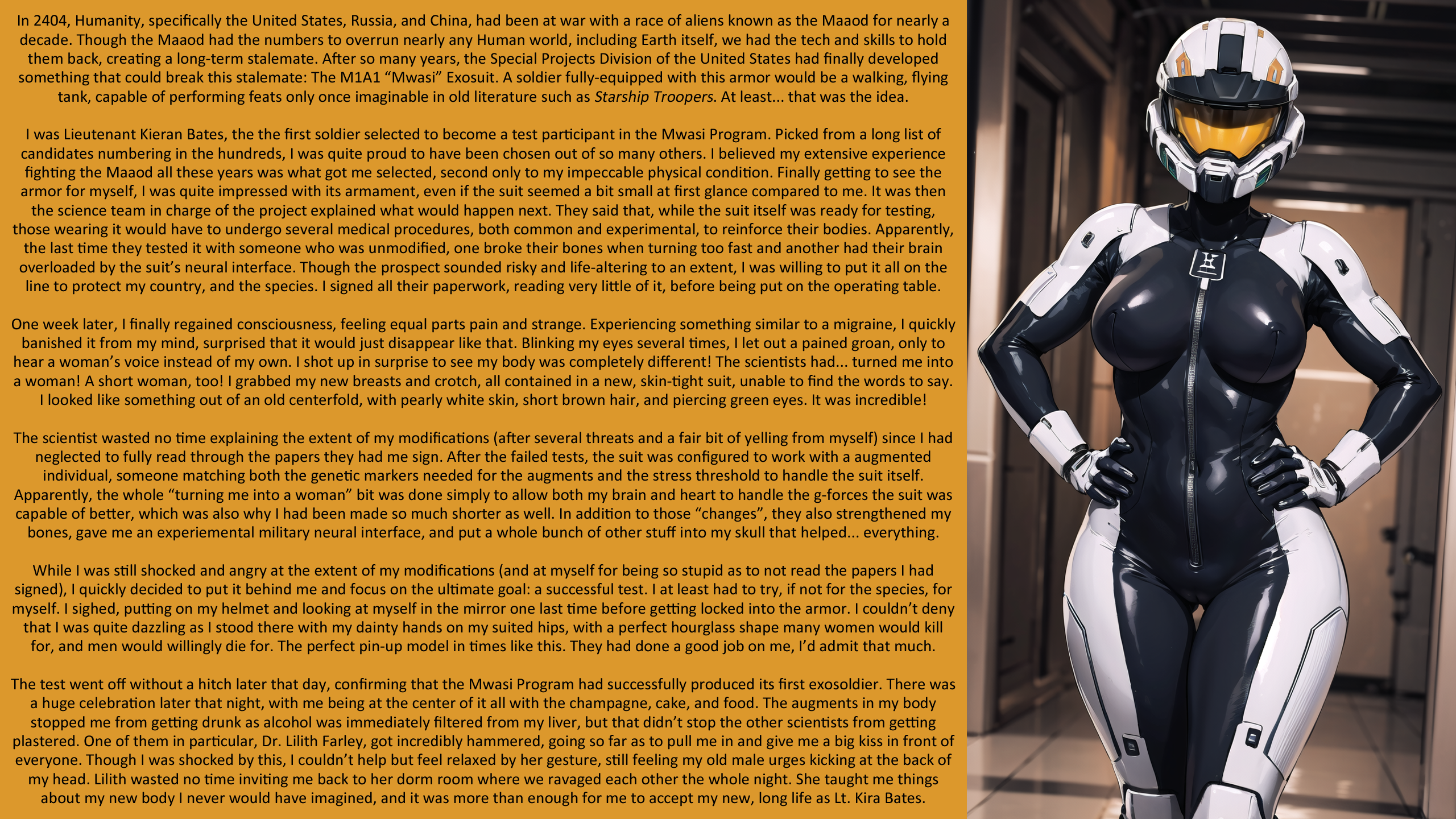 A solider signs up for an experimental exosuit program, one that could break a stalemate in a war with alien invaders. He forgets to read the fine print, however.